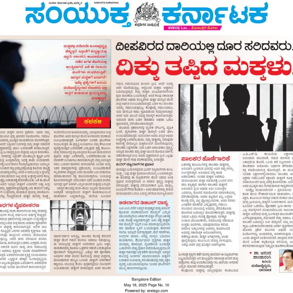 ಇಂದಿನ ಪಠ್ಯೇತರ ವಿದ್ಯಾಭ್ಯಾಸ, ಪ್ರೇರಣಾದಾಯಕ ಭಾಷಣ, ಒತ್ತಡದ ಪರೀಕ್ಷಾ ಪಾಠಗಳ ನಡುವೆ ಹಲವಾರು ಮಕ್ಕಳು ದಾರಿತಪ್ಪುತ್ತಿದ್ದಾರೆ. ಮನೆ, ಶಾಲೆ, ಸಮಾಜ ಎಲ್ಲೆಡೆ ಮಕ್ಕಳ ಸಮಸ್ಯೆ ಹೆಚ್ಚಾಗುತ್ತಿದೆ. ಇತ್ತೀಚೆಗೆ ಆತ್ಮಹತ್ಯೆ, ಅಪರಾಧ, ಮದ್ಯಪಾನ, ಮಾದಕ ವಸ್ತು ಬಳಕೆ, ಪೋರ್ನ್ ಸೈಟ್ಗಳ ಲತ, ಅತ್ಯಾಚಾರ, ಕೊಲೆ, ಗ್ಯಾಂಗ್ ಹೋರಾಟ—ಇವುಗಳಲ್ಲಿ ಭಾಗವಹಿಸುತ್ತಿರುವವರು ಪದವಿ ಪಡೆದ ಯುವಕರು ಮಾತ್ರವಲ್ಲ – ಪ್ರೌಢಶಾಲಾ ವಿದ್ಯಾರ್ಥಿಗಳೂ ಸೇರಿದ್ದಾರೆ! ಹೌದು, ಇಂದಿನ ಬಹುತೇಕ ಬಾಲಕರು ಕೇವಲ ಆಟವಲ್ಲದೆ ಅಪರಾಧ ಜಾಲಕ್ಕೂ ಸೆರೆಹಾಕಿ ಕೊಳ್ಳುತ್ತಿದ್ದಾರೆ. ಈ ಸಂದರ್ಭದಲ್ಲಿ ಪೋಷಕರು, ಶಿಕ್ಷಕರು ಮತ್ತು ಸಮಾಜ ಏನು ಮಾಡಬೇಕು ಎಂಬುದರ ಬಗ್ಗೆ ಗಂಭೀರವಾಗಿ ಚಿಂತಿಸಬೇಕಾಗಿದೆ. ಸಾಮಾನ್ಯವಾಗಿ ಮಕ್ಕಳಿಗೆ ಆಟ, ಪ್ರೀತಿಯೂ ಉಲ್ಲಾಸವೂ ಇರುತ್ತದೆ. ಆದರೆ, ಇಂದು ಬಹುತೇಕ ಮಕ್ಕಳಲ್ಲಿ “ಭದ್ರತೆಯ ಭಾವನೆ” ಕೊರತೆಯಾಗಿದೆ. ಅವುಗಳಿಗೆ ಗುರಿಯೂ ಬೇಕು, ಆದರೆ ದಾರಿ ತಪ್ಪಿದರೆ ಯಾವುದೇ ಗುರಿ ನಿರರ್ಥಕವಾಗುತ್ತದೆ. ನಾವು ಕಲಿಸುತ್ತಿರುವ ವಿಷಯಗಳಿಗಿಂತ ಅವರು ಹೇಗೆ ಯೋಚಿಸುತ್ತಾರೆ ಎಂಬುದರ ಮೇಲೆ ಹೆಚ್ಚು ಗಮನ ಕೊಡಬೇಕು. ನಾನು ಕಳೆದ ತಿಂಗಳು ಮಕ್ಕಳ ಸುಧಾರಣಾ ಕೇಂದ್ರಕ್ಕೆ ಭೇಟಿ ಕೊಟ್ಟೆ. ಅಲ್ಲಿನ ಮಕ್ಕಳೊಂದಿಗೆ ಕೆಲ ಕಾಲ ಮಾತುಕತೆ ನಡೆಸಿದೆ. ಅವರ ಮುಖದಲ್ಲಿ ನೊಗಿದ ಭಾವನೆ, ದುಃಖ, ಭಯ, ಮತ್ತು ನಿರಾಶೆ ಸ್ಪಷ್ಟವಾಗಿ ಕಾಣಿಸಿತು. ಹಲವರನ್ನು ಅಪರಾಧಿಗಳು ಎಂದು ಅರೆದಿದ್ದರು. ಆದರೆ ಅವರ ವಯಸ್ಸು, ಪರಿಸರ, ಬದುಕಿನ ಒತ್ತಡ ಇವೆಲ್ಲ ಅರ್ಥ ಮಾಡಿಕೊಂಡಾಗ, ಅಸಲಿ ಸಮಸ್ಯೆ ಎಲ್ಲಿ ಎಂಬುದನ್ನು ಅರಿಯಬಹುದು.