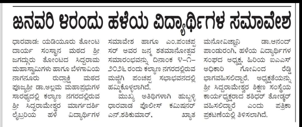 ಹಳೆಯ ವಿದ್ಯಾರ್ಥಿಗಳ ಸಮಾವೇಶ