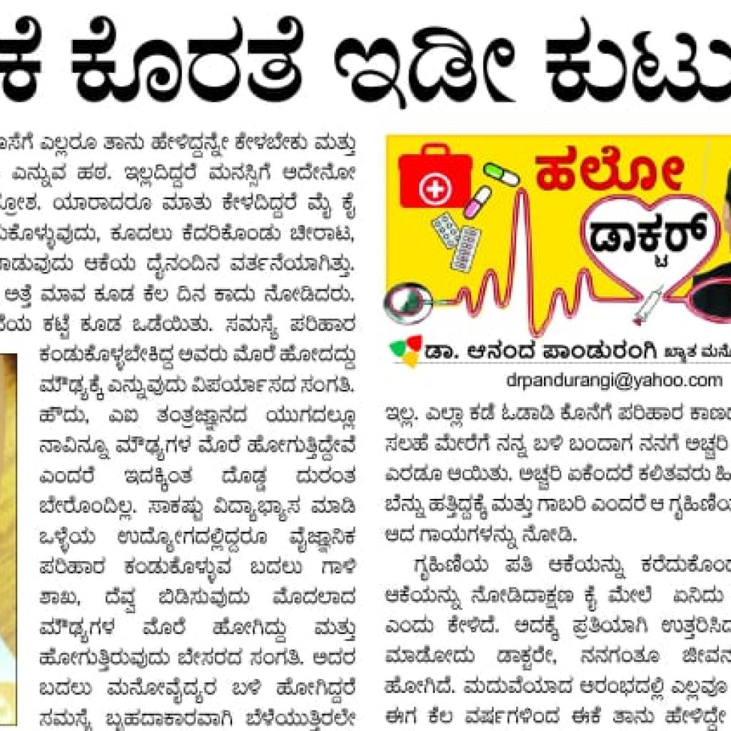 ಹೊಂದಾಣಿಕೆ ಕೊರತೆ ಇಡಿe ಕುಟುಂಬಕ್ಕೆ ಚಿಂತೆ.