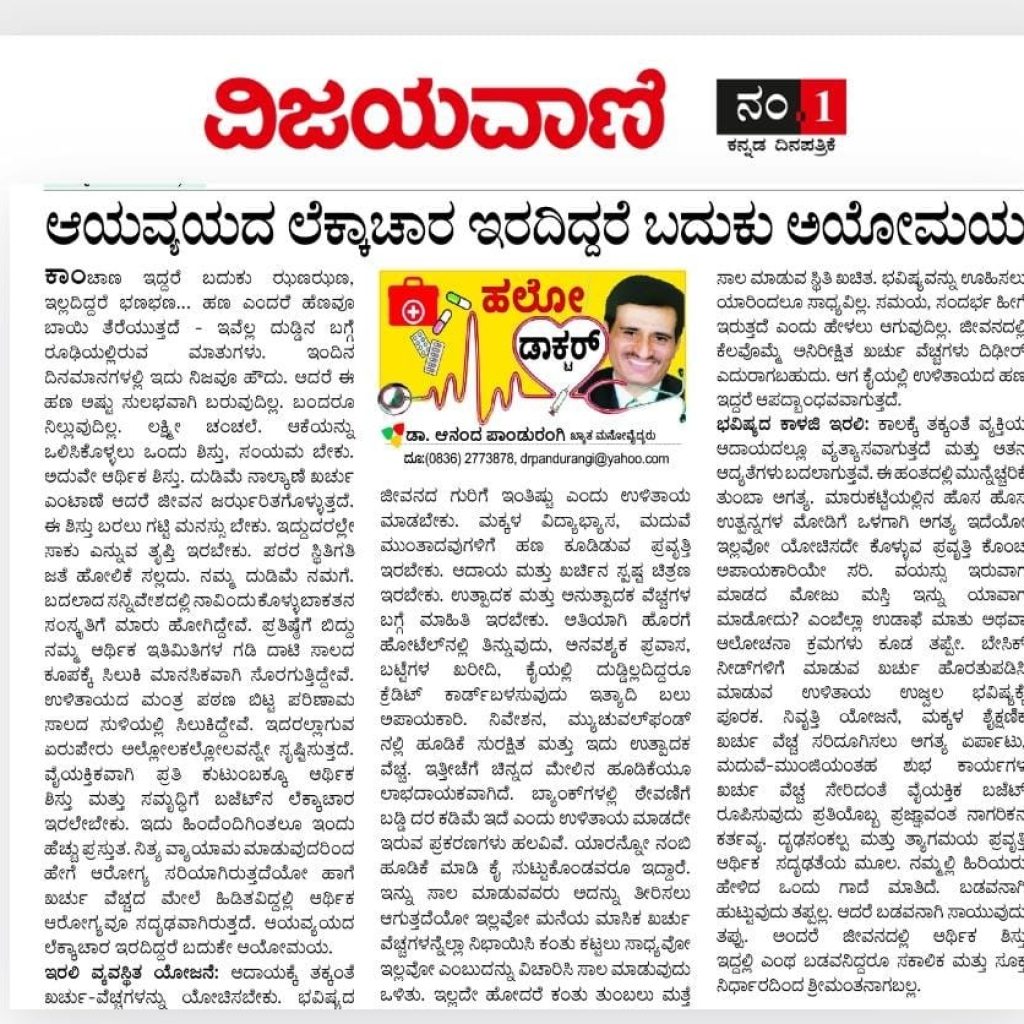 “ಆರ್ಥಿಕ ಶಿಸ್ತಿನಲ್ಲಿ: ಡಾ. ಆನಂದ ಪಾಂಡುರಂಗಿಯ ಚಿಂತನೆ”